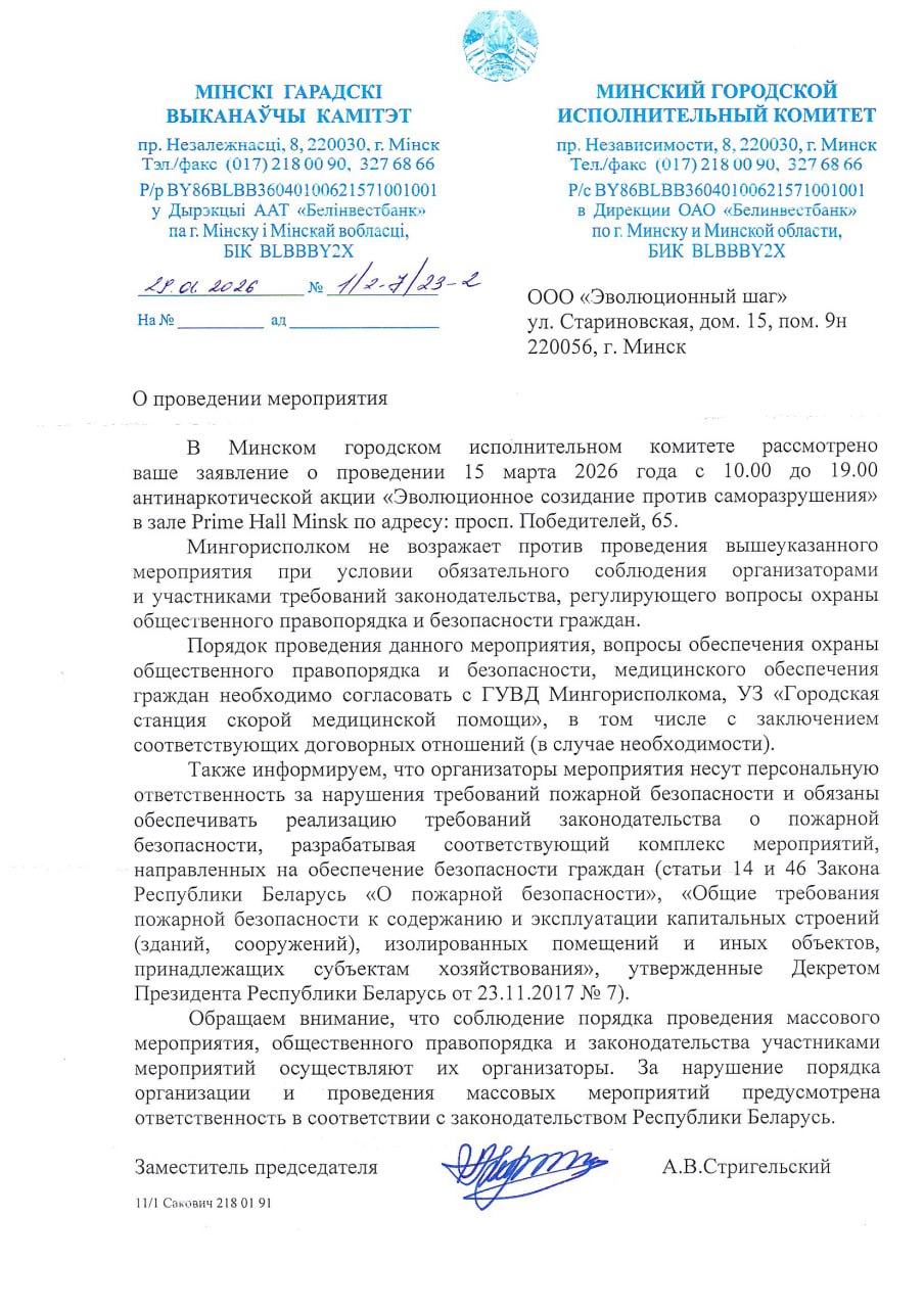 Разрешение на проведение мероприятия Минского городского исполнительного комитета № 1/2-7/23-2 от 29.01.2026 г.